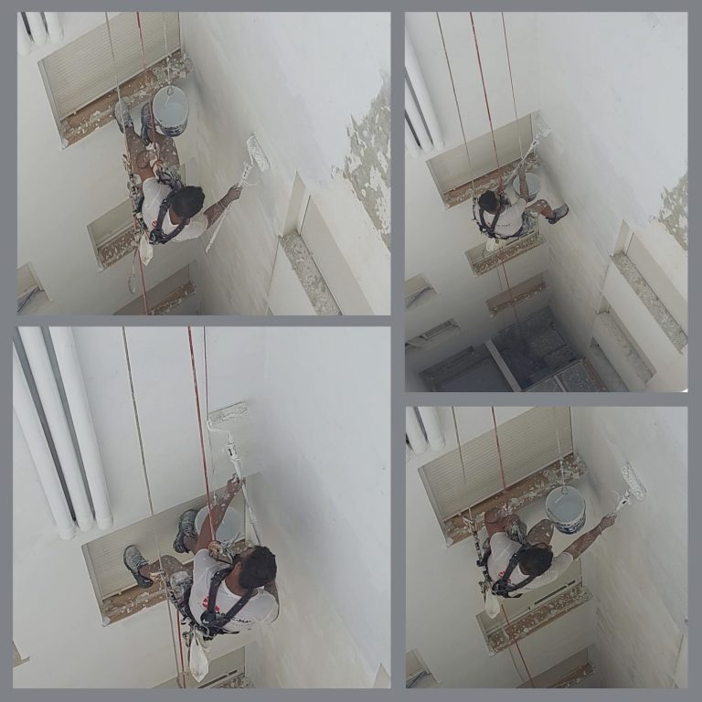 Reparación y pintado de patios interiores sin andamios, sin ruidos y sin necesidad de entrar en ninguna vivienda.